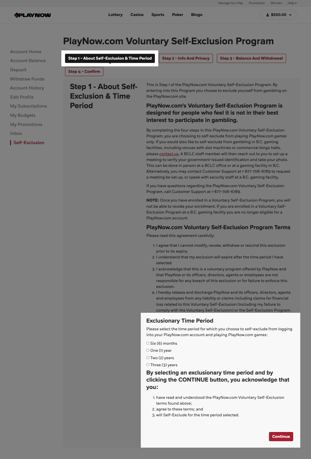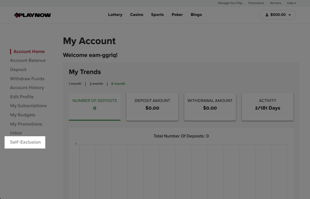 If you choose to be excluded from PlayNow, Manitoba Liquor & Lotteries will cancel your Player Account and pay out any unredeemed PlayerCash once you have completed the online form. Any promotional funds that have been credited to your account can no longer be redeemed.
