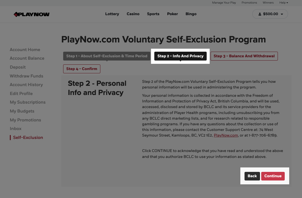 . We cannot process your request without it. Once you have received acknowledgement from Manitoba Liquor & Lotteries that your letter was received and accepted, you may re-enter the gaming premises and/or register for an account on PlayNow.com.